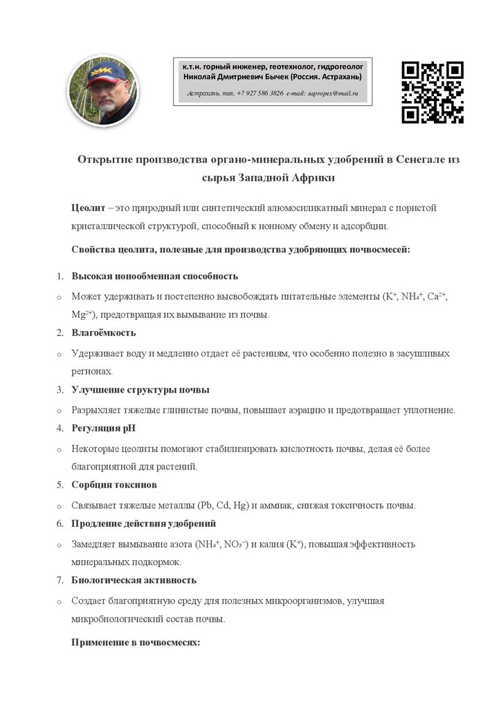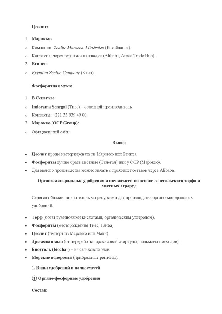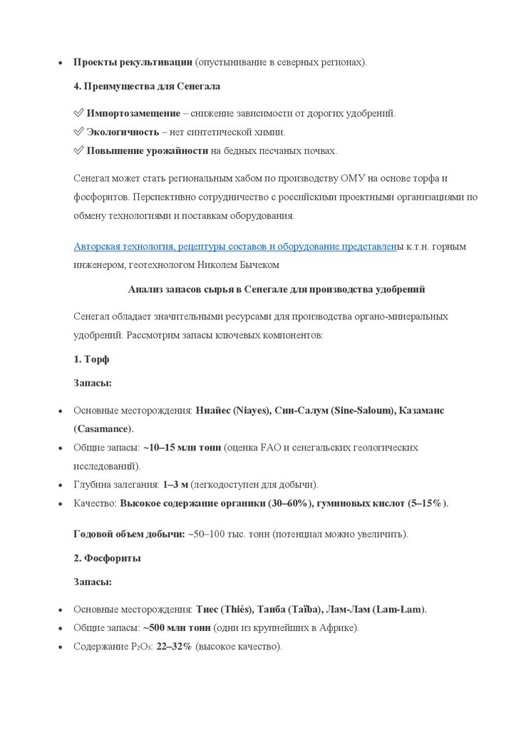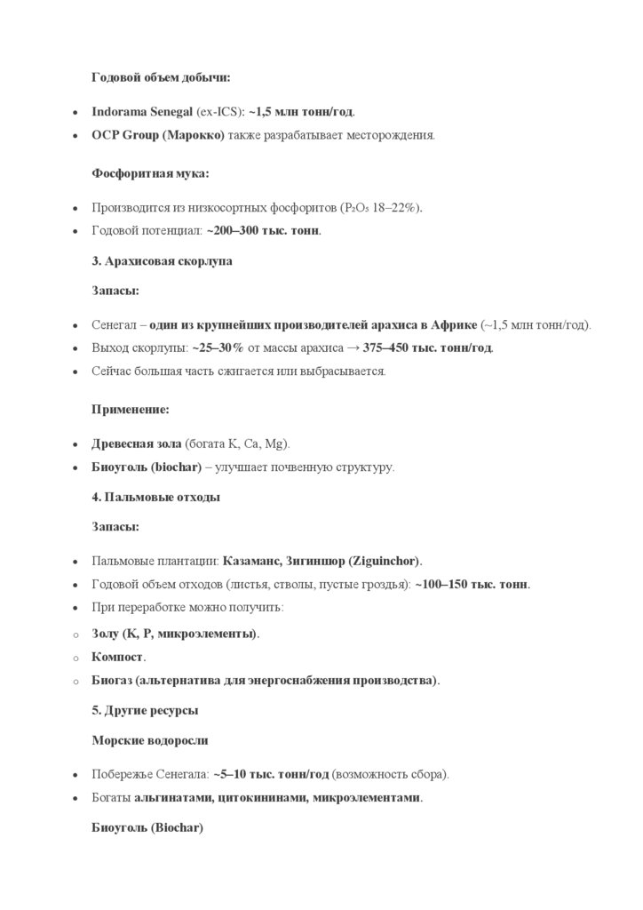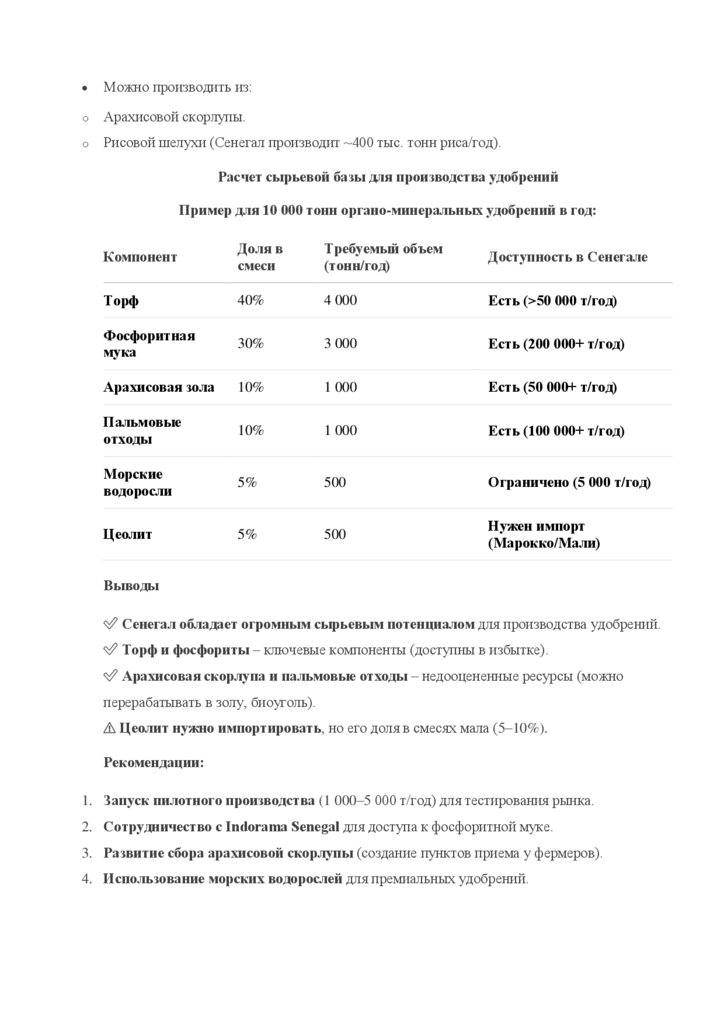 Открытие производства органо - минеральных удобрений в Сенегале из сырья Западной Африки