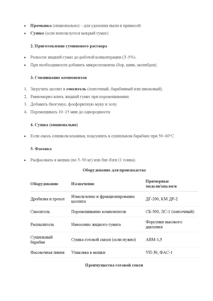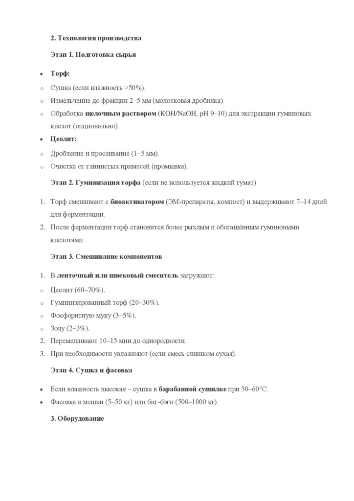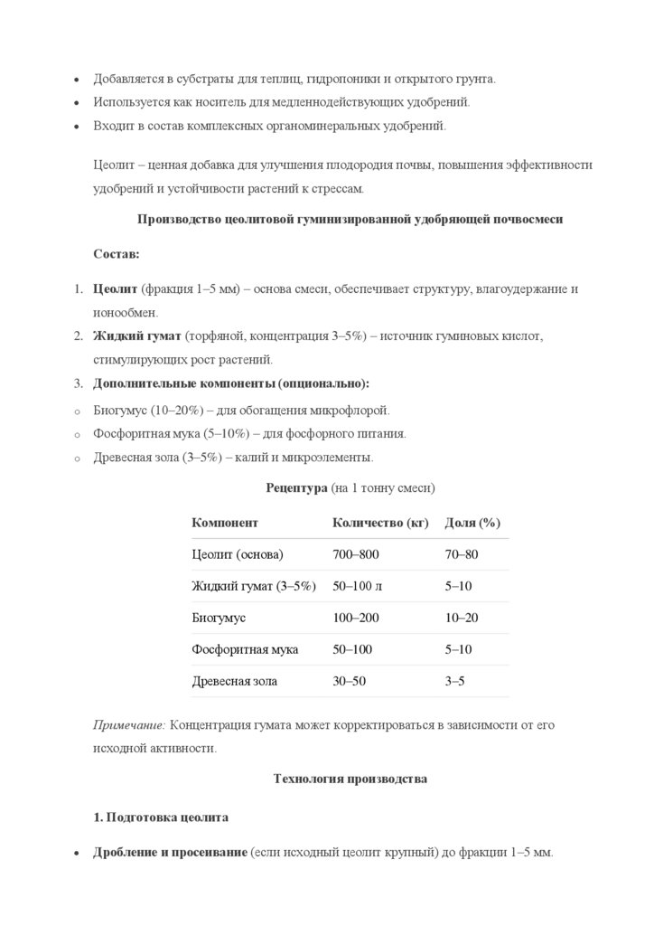 Производство цеолитовой гуминизированной удобряющей почвосмеси