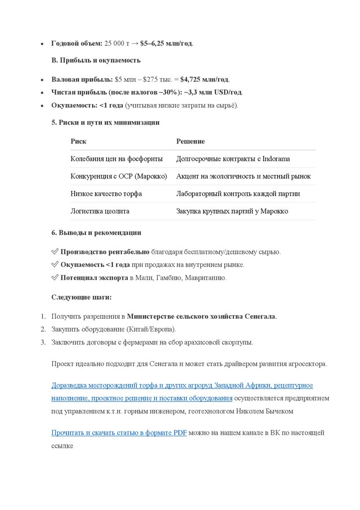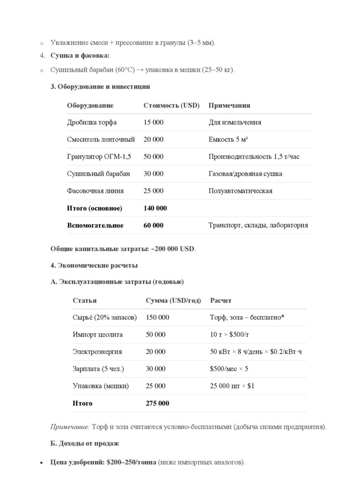 Годовой объем: 25 000 т → $5–6,25 млн/год.В. Прибыль и окупаемость