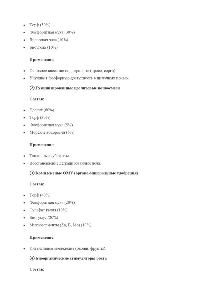 Торф (40%) + фосфориты (30%) + зола (20%) + цеолит (10%).