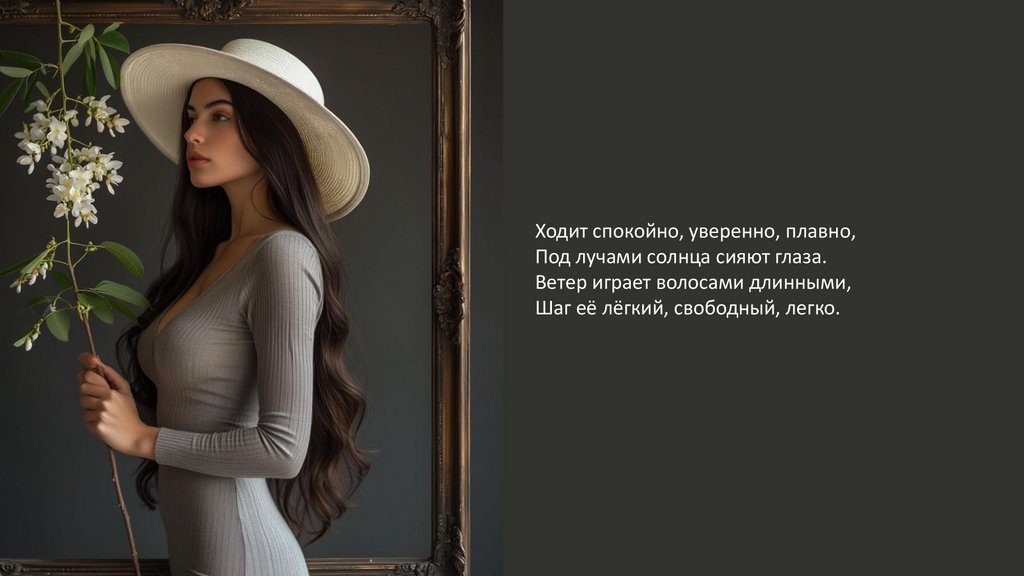 Ходит спокойно, уверенно, плавно,Под лучами солнца сияют глаза.