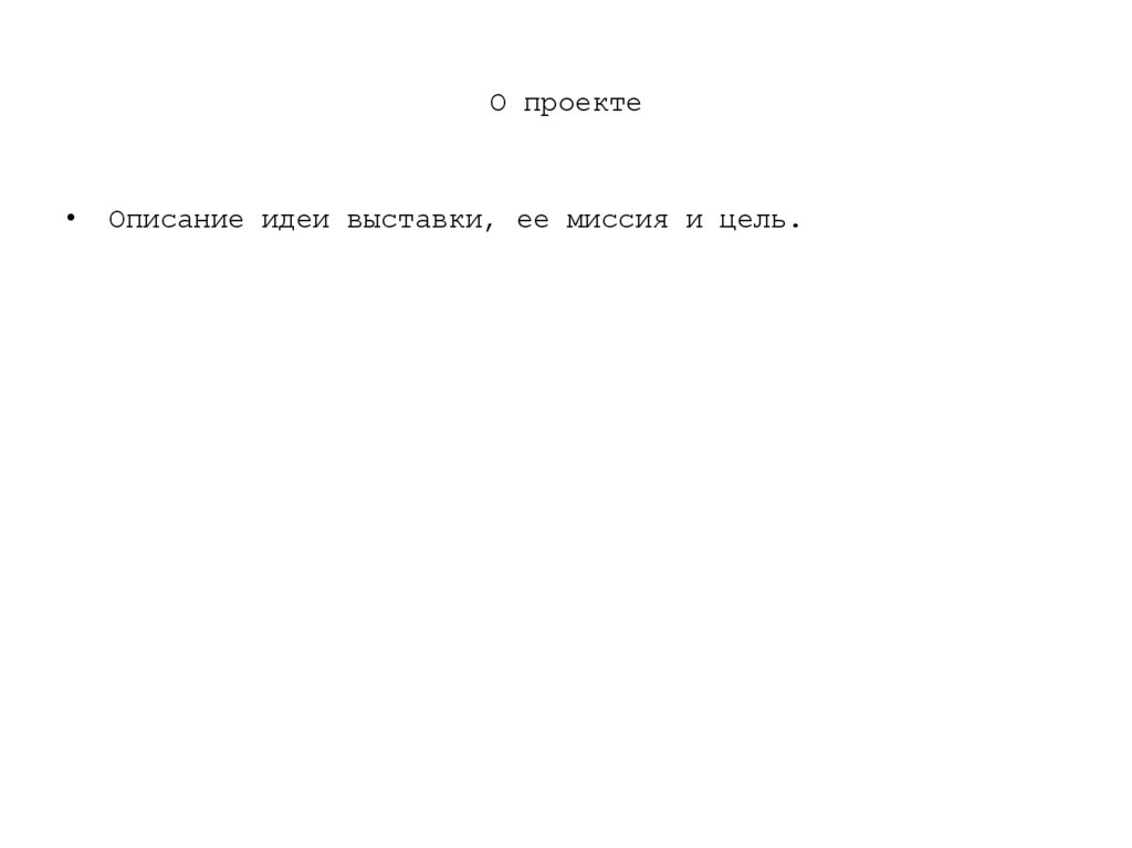 О проектеОписание идеи выставки, ее миссия и цель.