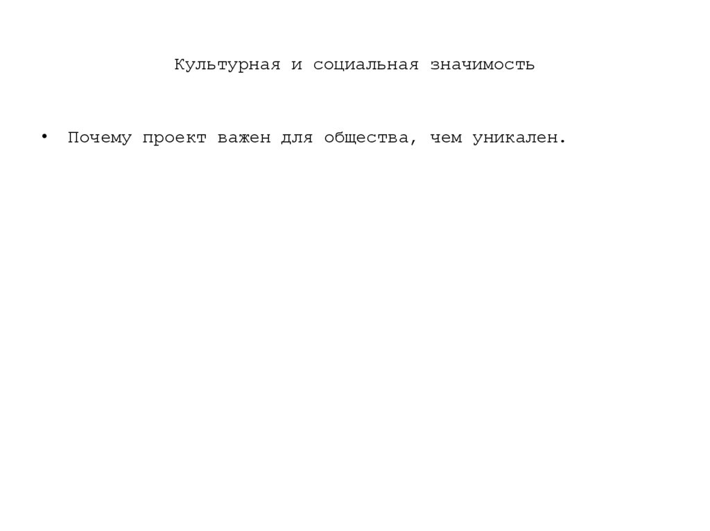 Культурная и социальная значимостьПочему проект важен для общества, чем уникален.