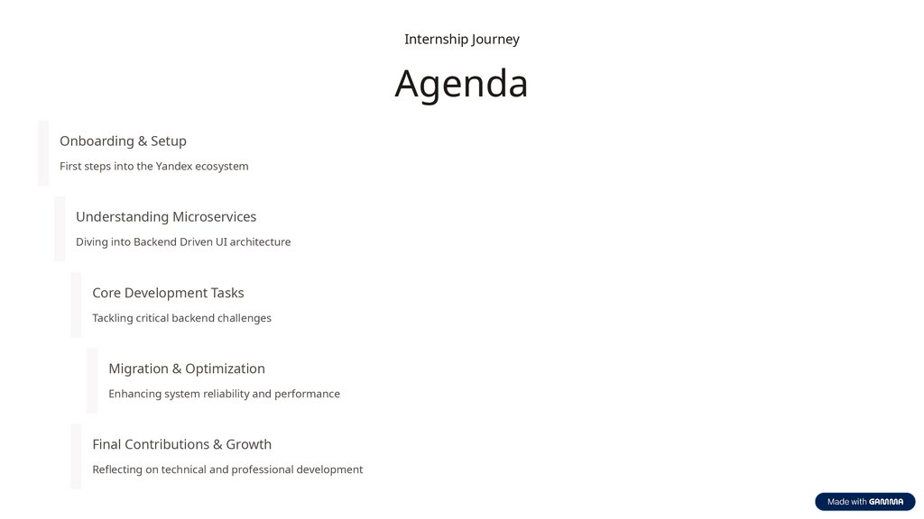 Internship JourneyAgenda