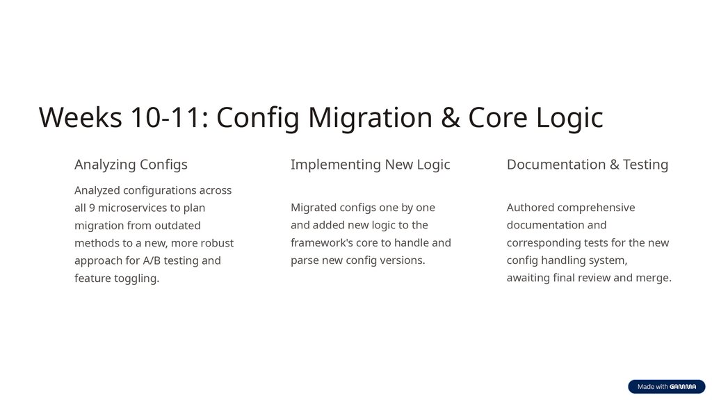 Weeks 10-11: Config Migration & Core LogicAnalyzing Configs