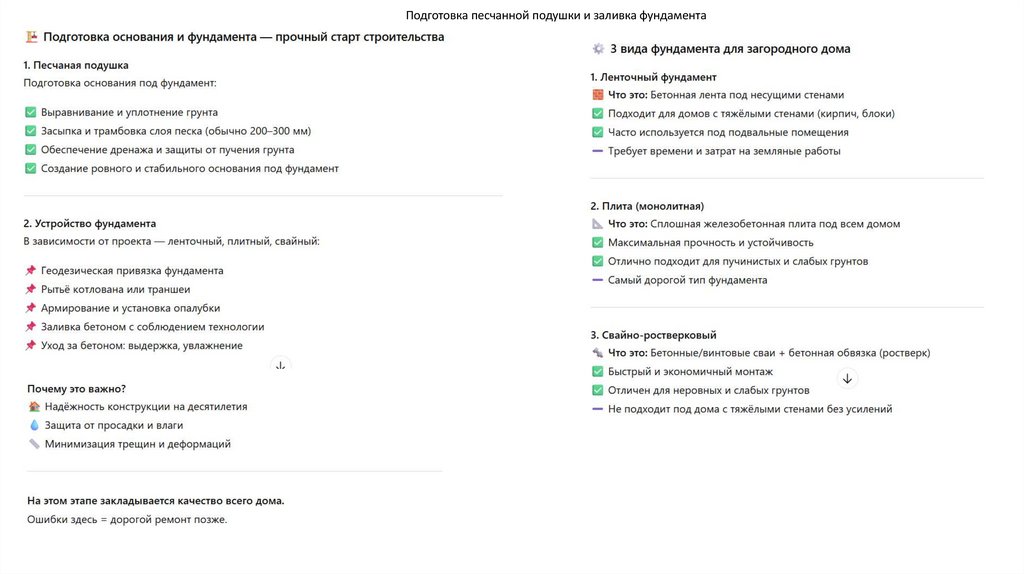 Подготовка песчанной подушки и заливка фундамента13.
