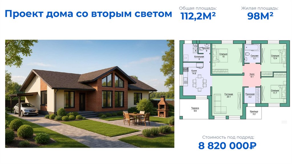 Общая площадь:Проект дома со вторым светом 112,2М²