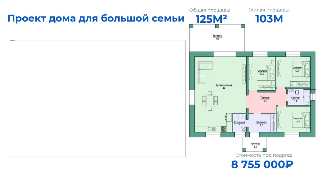 Проект дома для большой семьиОбщая площадь: