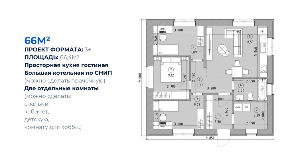 66М²ПРОЕКТ ФОРМАТА: 3+