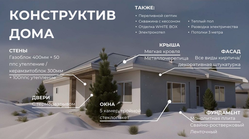 • Теплый пол по всей площади дома