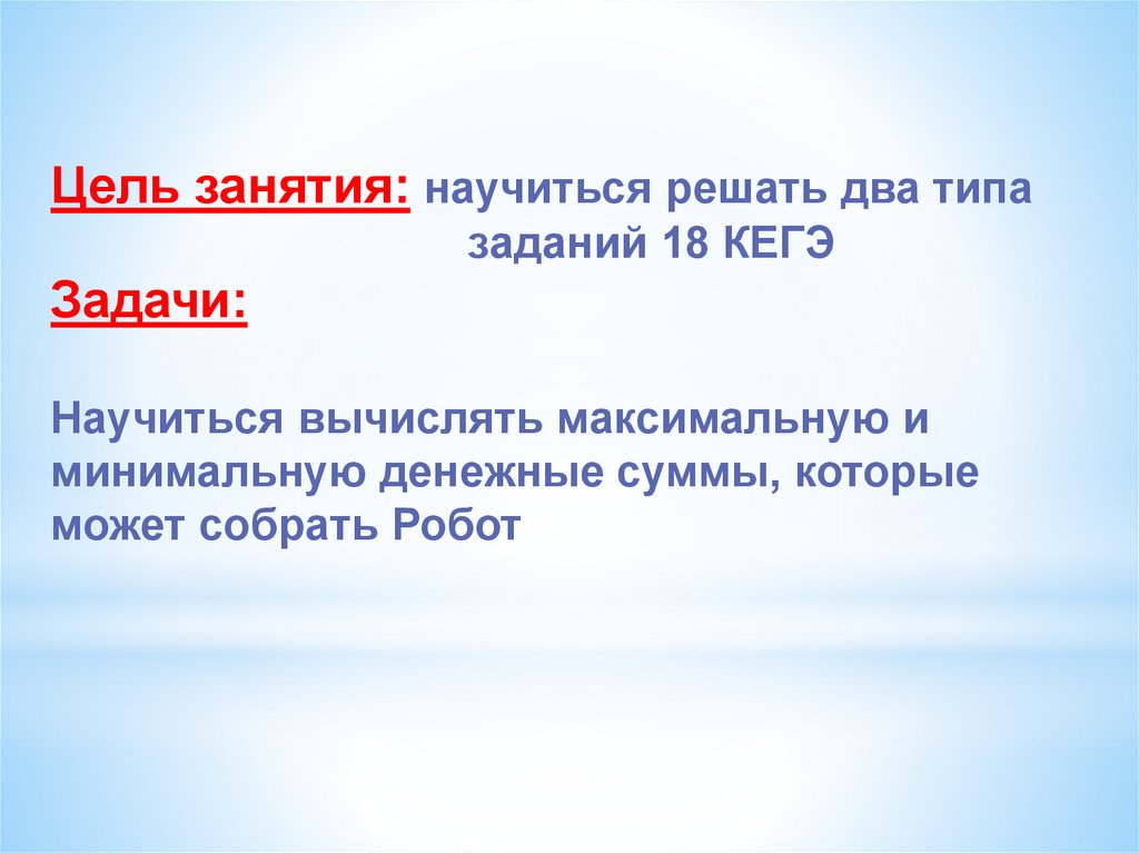 Цель занятия: научиться решать два типазаданий 18 КЕГЭ