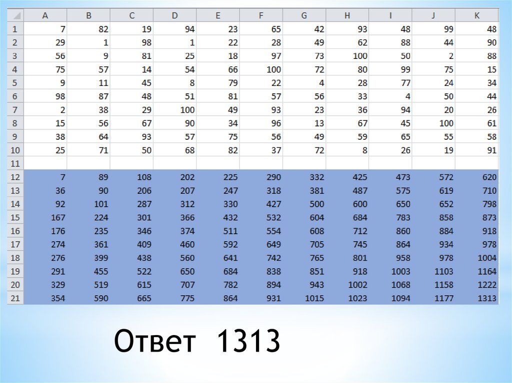 клетке квадрата лежит монета достоинством от 1 до 100.