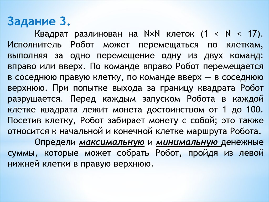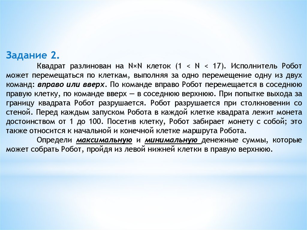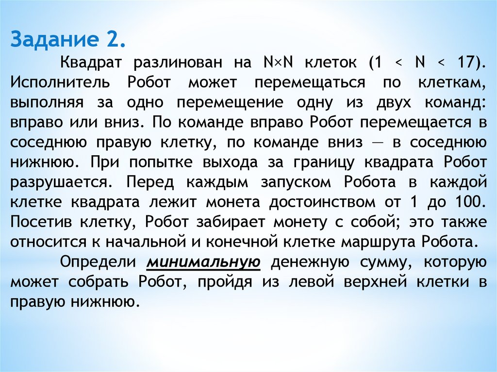 Задание 2.Квадрат разлинован на N×N клеток (1 < N < 17). Исполнитель Робот