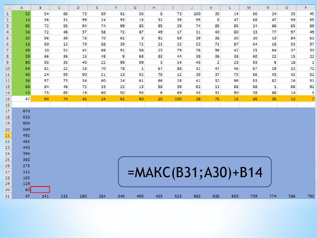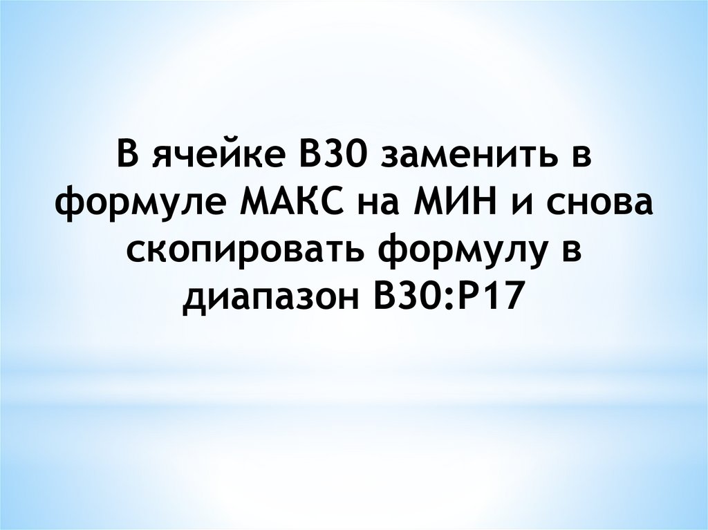 В ячейке В30 заменить вформуле МАКС на МИН и снова