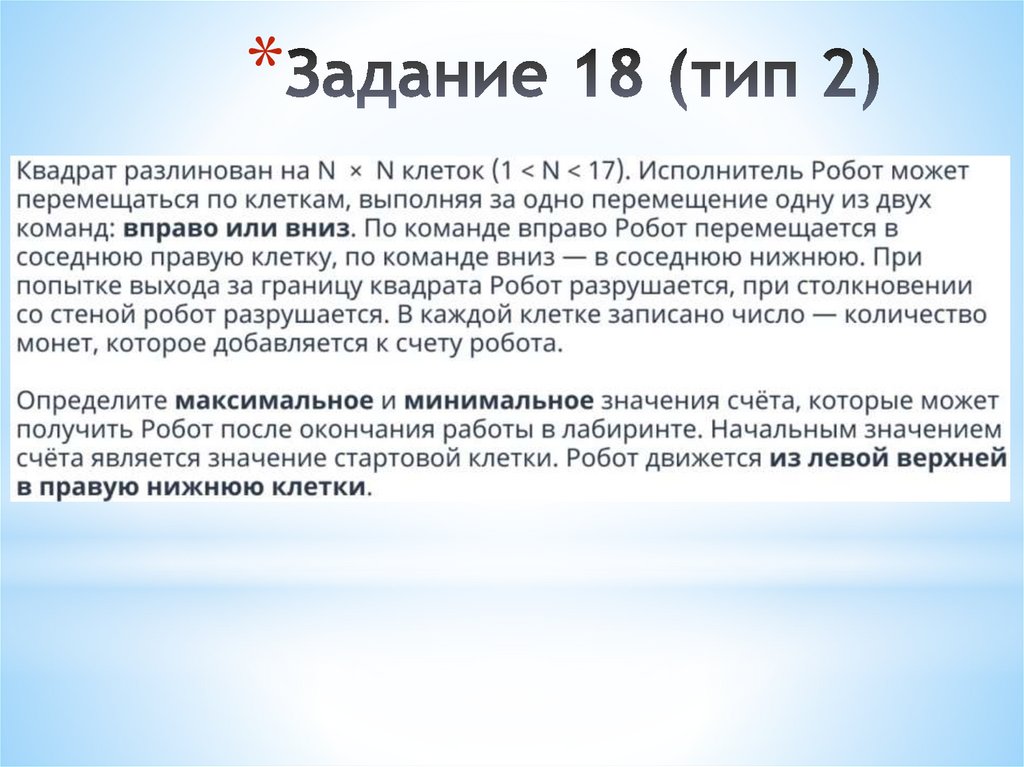 Подготовки к ЕГЭ по информатике. Разбор задания 18 (типы 1 и 2)