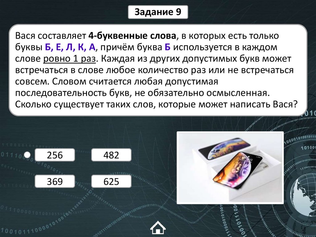 Задание 9Вася составляет 4-буквенные слова, в которых есть только
