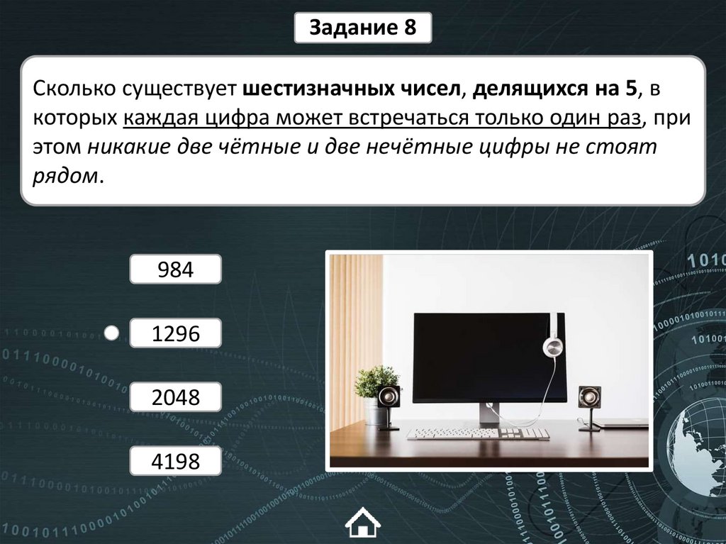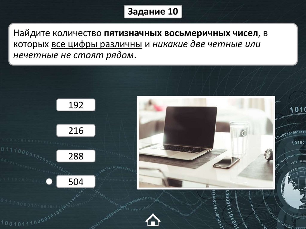 Задание 10Найдите количество пятизначных восьмеричных чисел, в