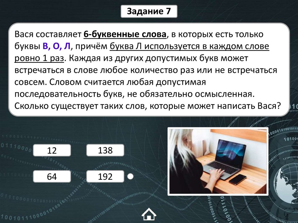 Задание 7Вася составляет 6-буквенные слова, в которых есть только