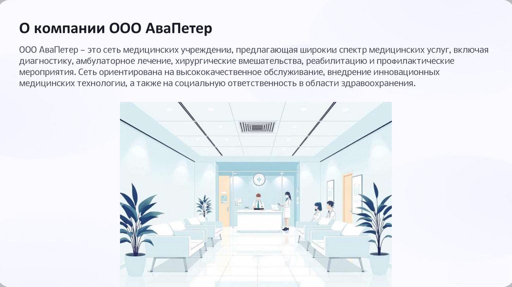 О компании ООО АваПетерООО АваПетер — это сеть медицинских учреждений, предлагающая широкий спектр медицинских услуг, включая