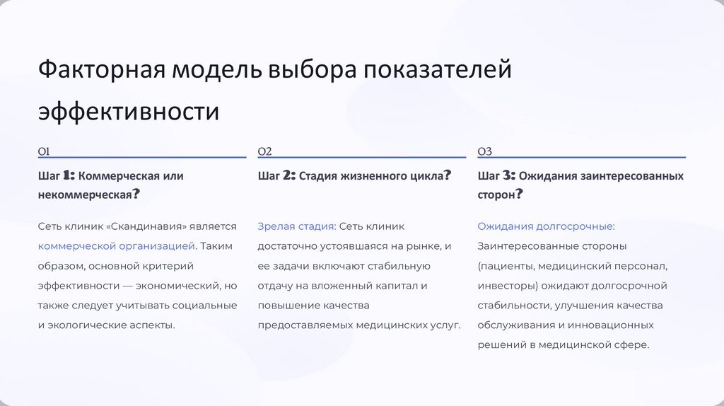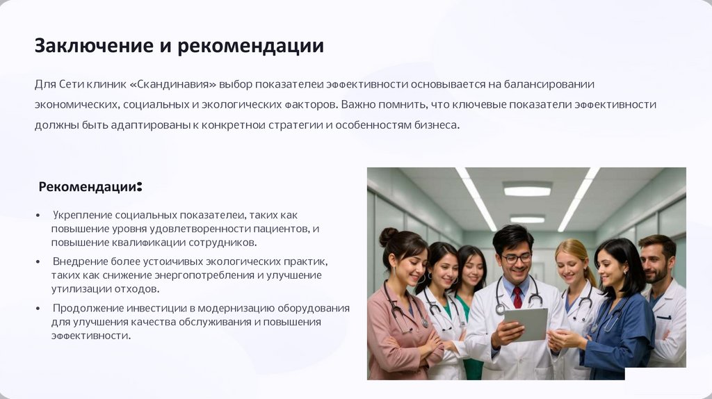 Заключение и рекомендацииДля Сети клиник «Скандинавия» выбор показателей эффективности основывается на балансировании