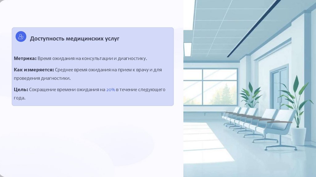 Доступность медицинских услугМетрика: Время ожидания на консультации и диагностику.