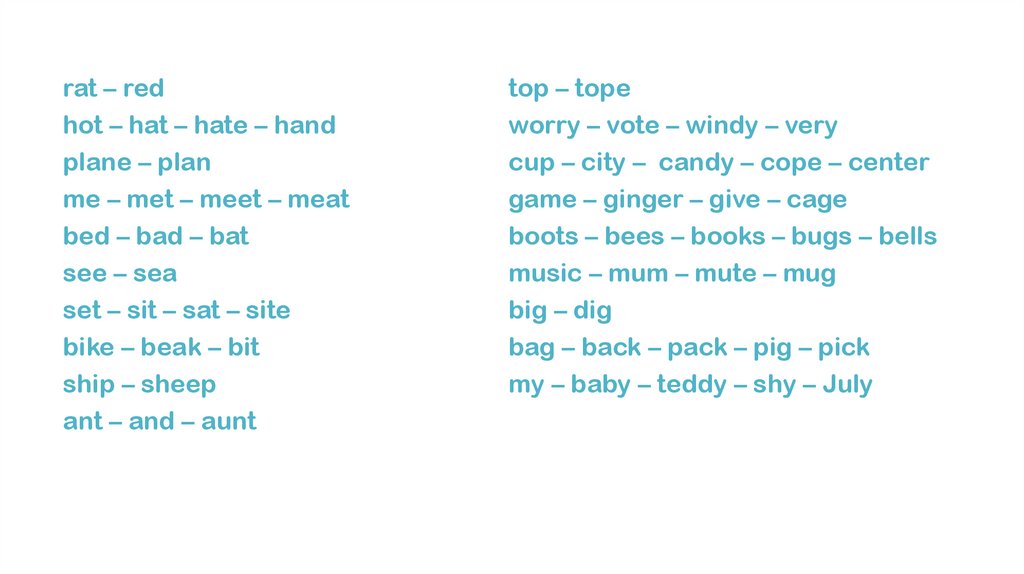 [ʊ] book, took, look, cook[u:] spoon, moon, soon