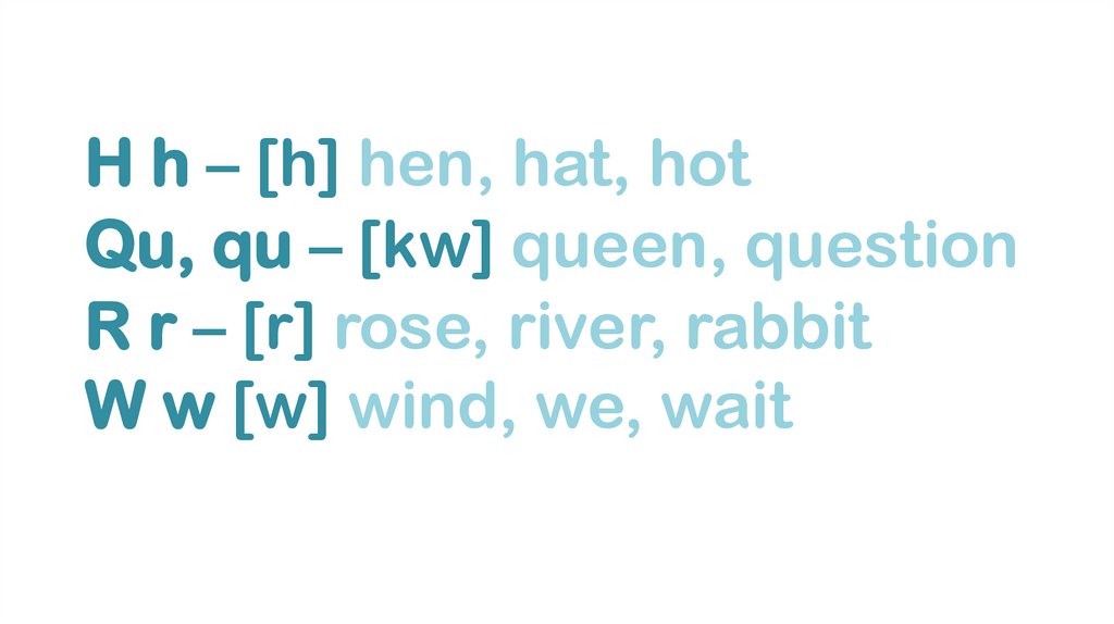 H h – [h] hen, hat, hotQu, qu – [kw] queen, question