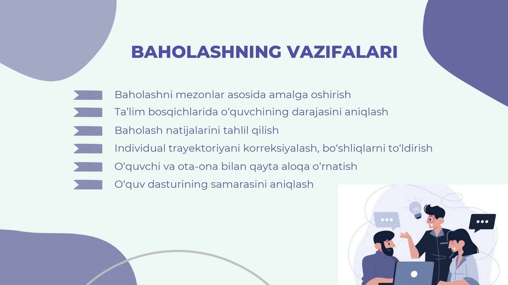 BAHOLASHNING VAZIFALARIBaholashni mezonlar asosida amalga oshirish