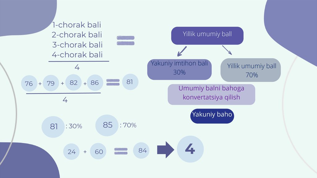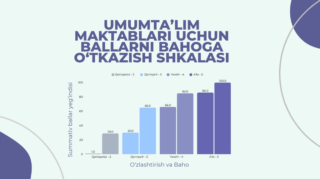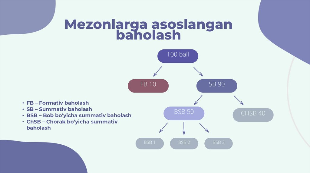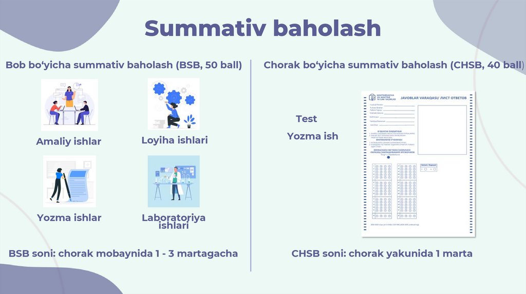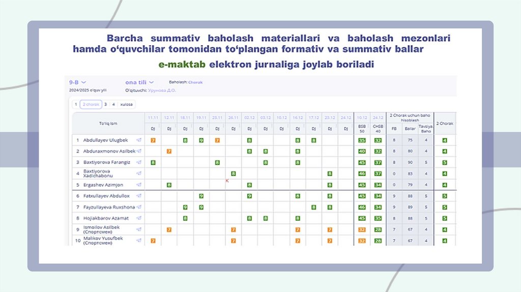 7. Bob yuzasidan summativ baholash (BSB) va chorak yakunida