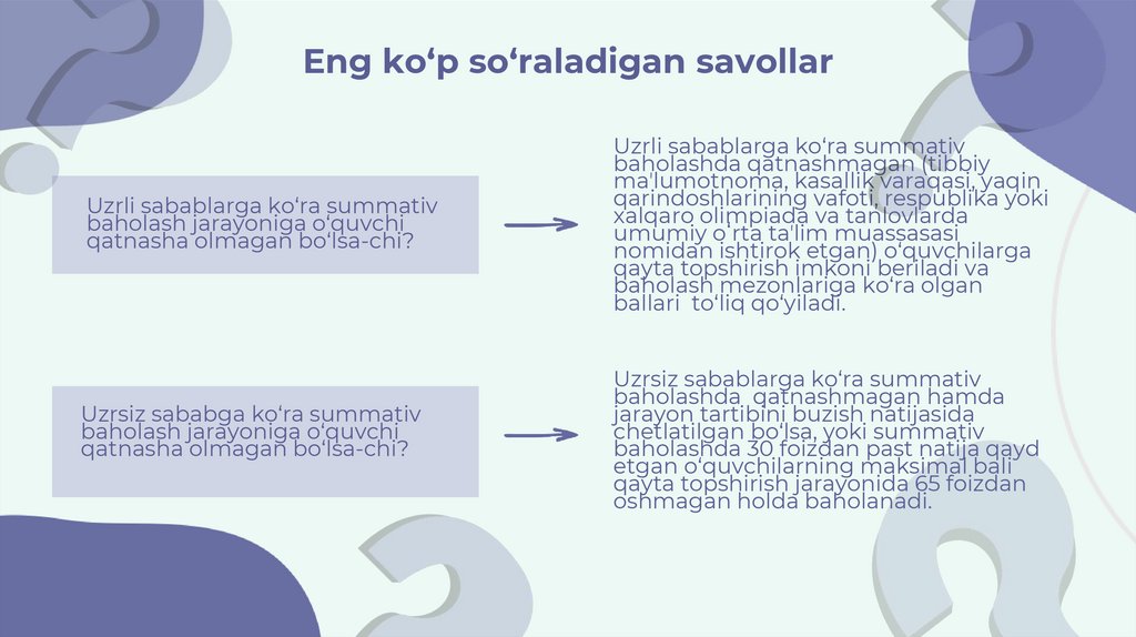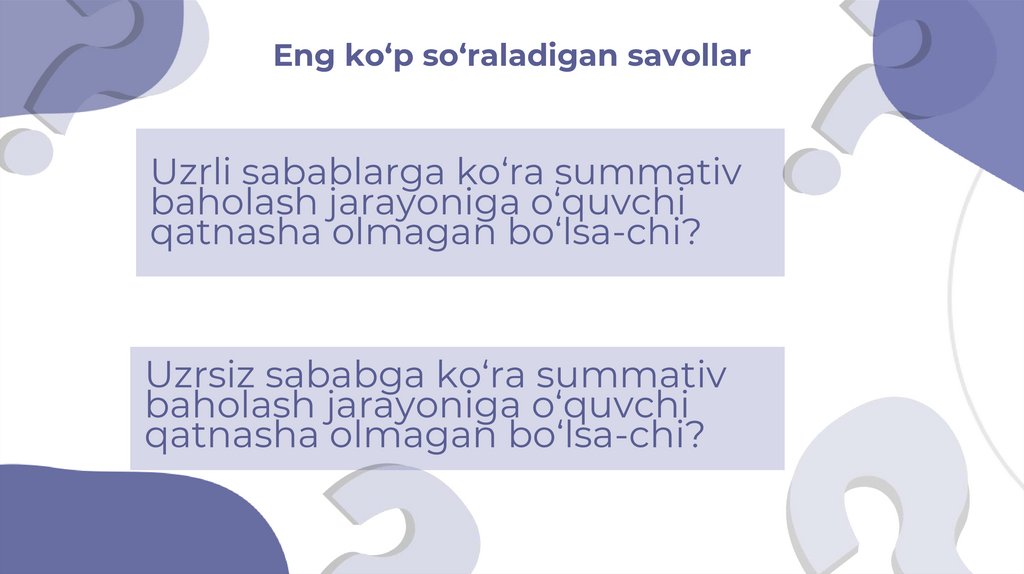 Eng ko‘p so‘raladigan savollarUzrli sabablarga ko‘ra summativ