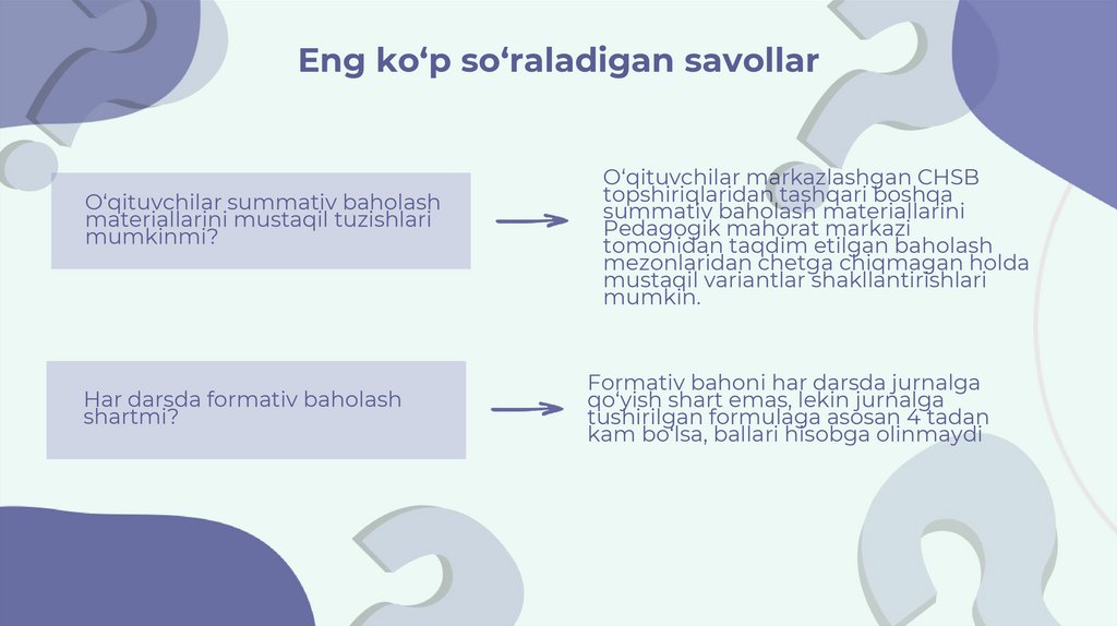 Eng ko‘p so‘raladigan savollarO‘qituvchilar summativ baholash