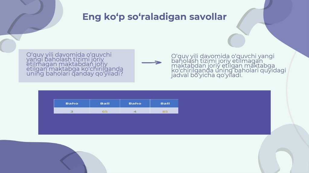 Eng ko‘p so‘raladigan savollarO‘quv yili davomida o‘quvchi