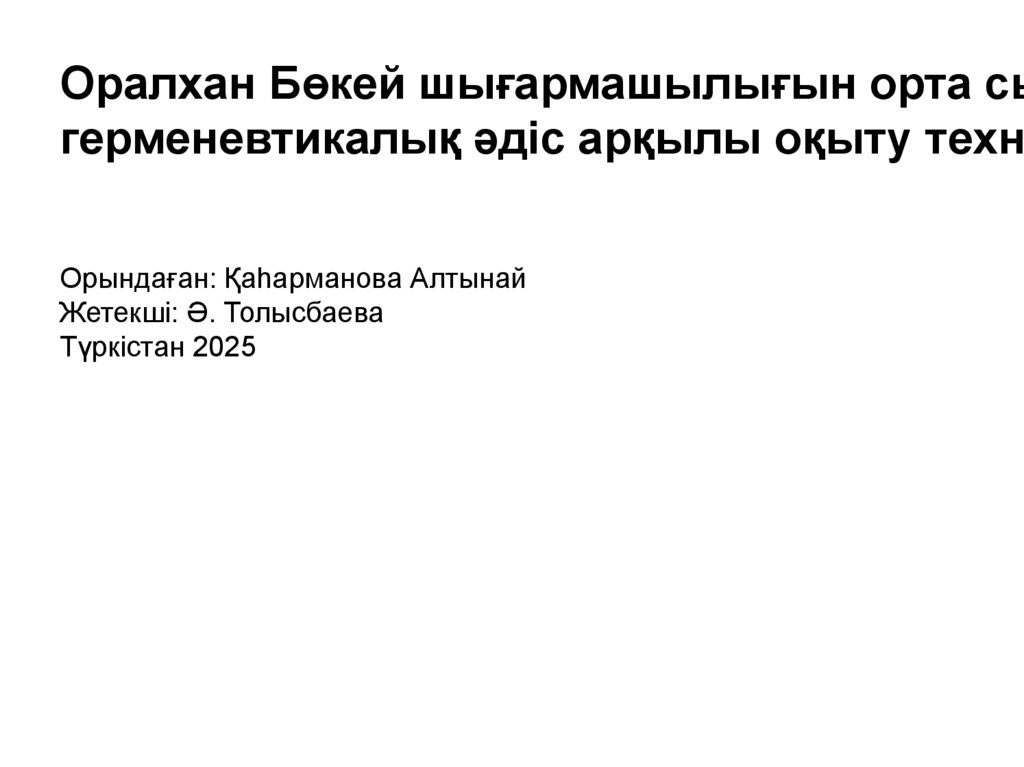 Оралхан Бөкей шығармашылығын орта сы герменевтикалық әдіс арқылы оқыту техно