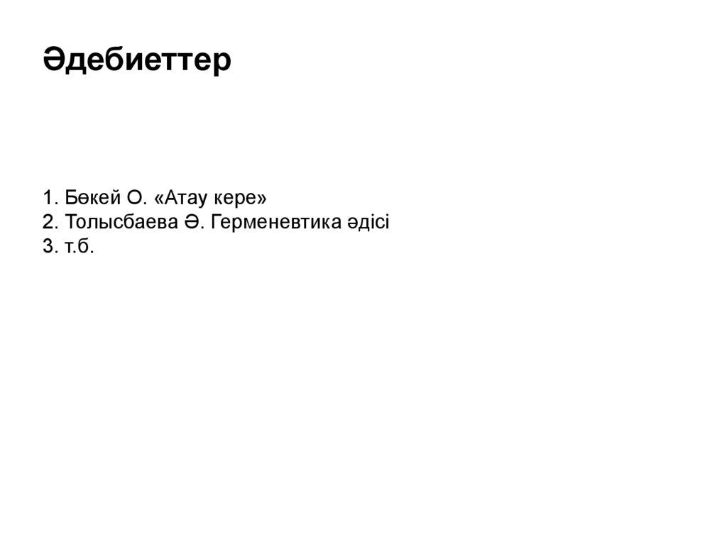 Әдебиеттер1. Бөкей О. «Атау кере»