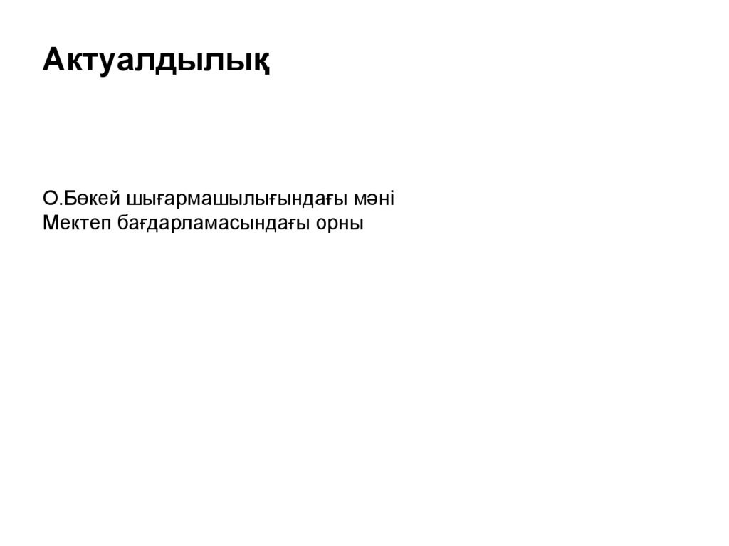 АктуалдылықО.Бөкей шығармашылығындағы мәні