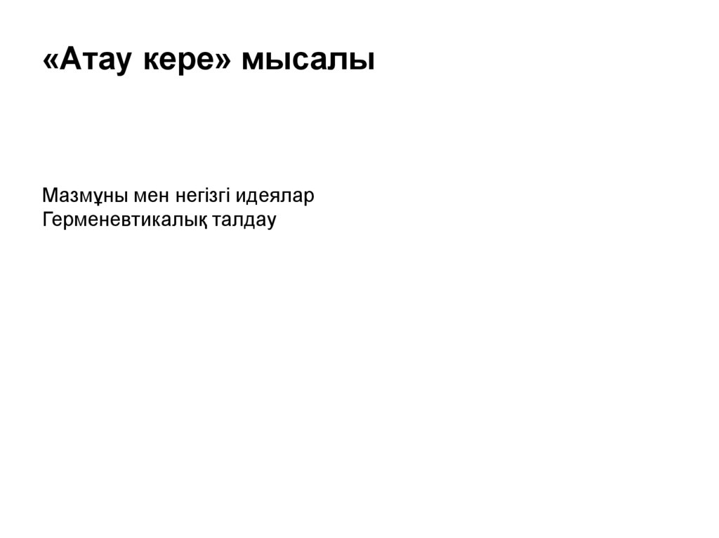 «Атау кере» мысалыМазмұны мен негізгі идеялар