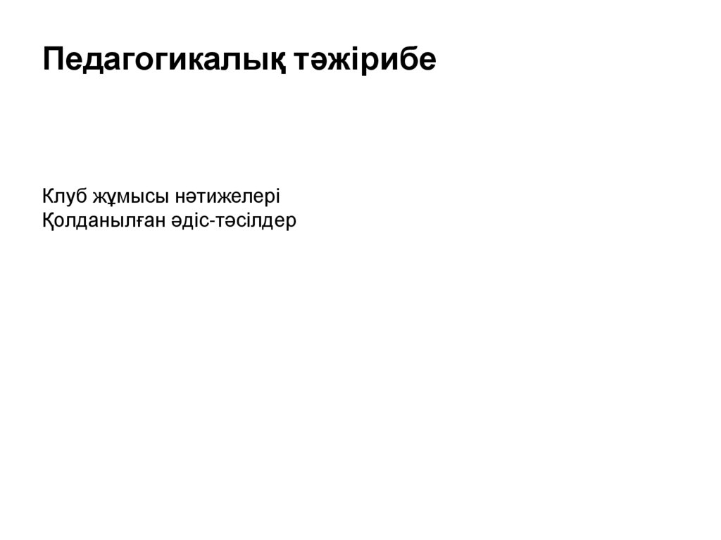 Педагогикалық тәжірибеКлуб жұмысы нәтижелері