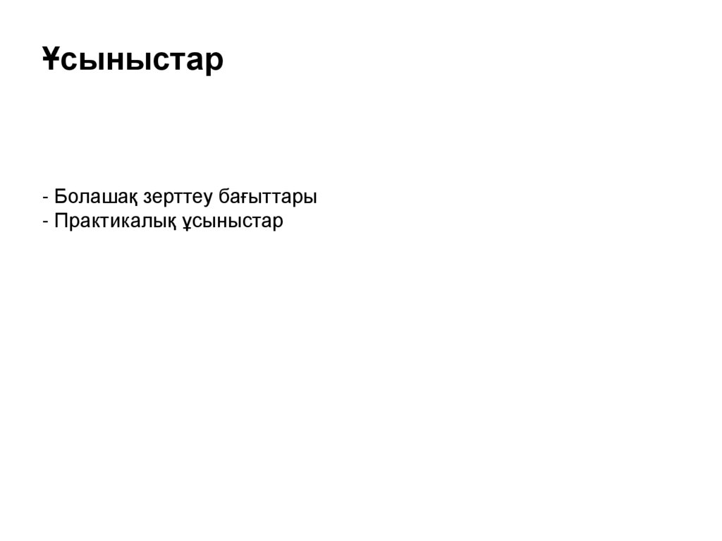 Ұсыныстар- Болашақ зерттеу бағыттары