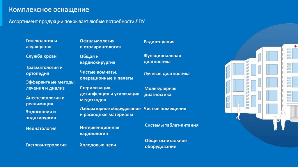 Комплексное оснащениеАссортимент продукции покрывает любые потребности ЛПУ