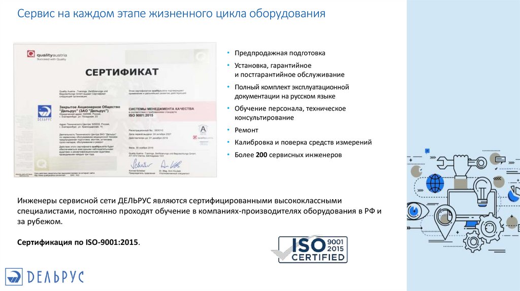 Инженеры сервисной сети ДЕЛЬРУС являются сертифицированными высококлассными