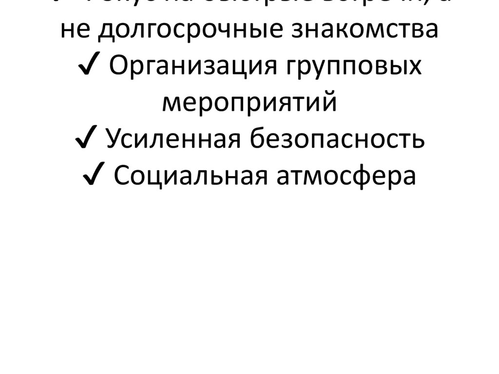 ✔ Фокус на быстрые встречи, ане долгосрочные знакомства