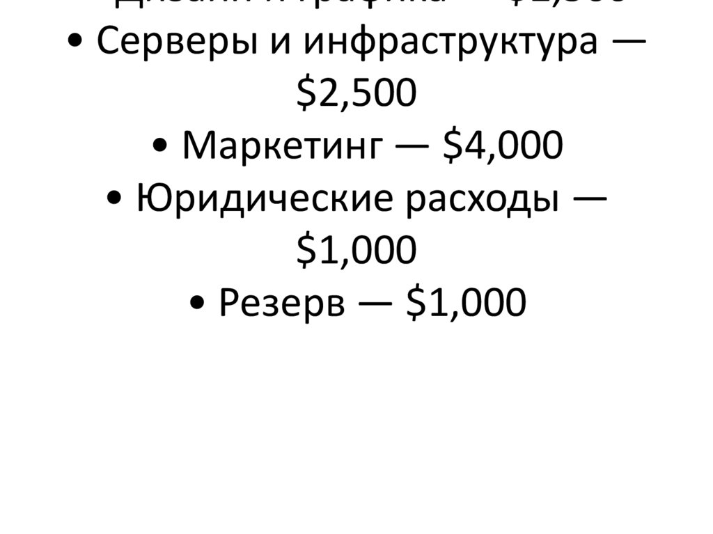 • Дизайн и графика — $2,500• Серверы и инфраструктура —