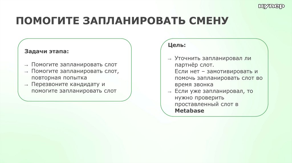 ПОМОГИТЕ ЗАПЛАНИРОВАТЬ СМЕНУЗадачи этапа: