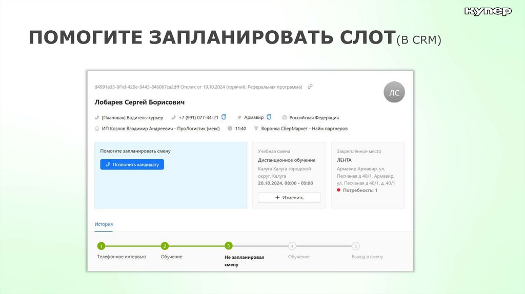 ПОМОГИТЕ ЗАПЛАНИРОВАТЬ СЛОТ(В CRM)14.
