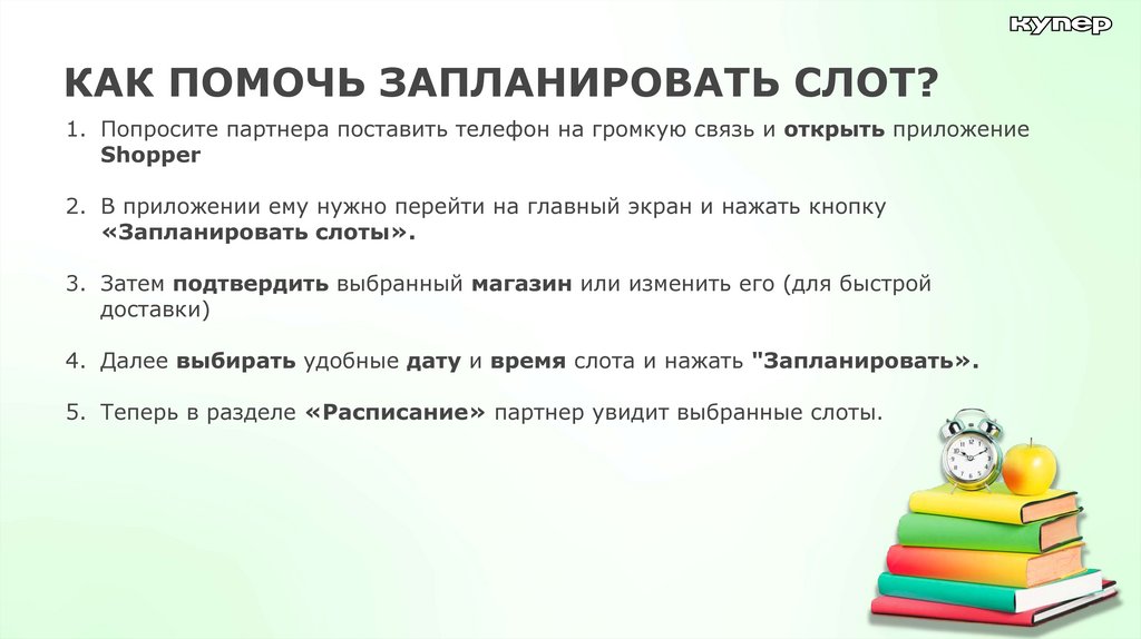 КАК ПОМОЧЬ ЗАПЛАНИРОВАТЬ СЛОТ?1. Попросите партнера поставить телефон на громкую связь и открыть приложение