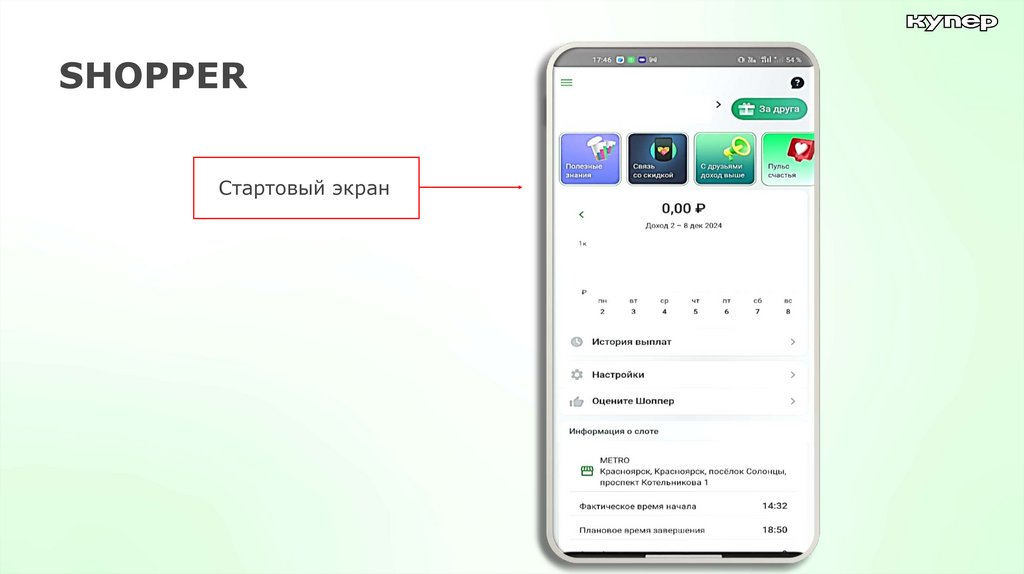 2. В приложении ему нужно перейти на главный экран и нажать кнопку