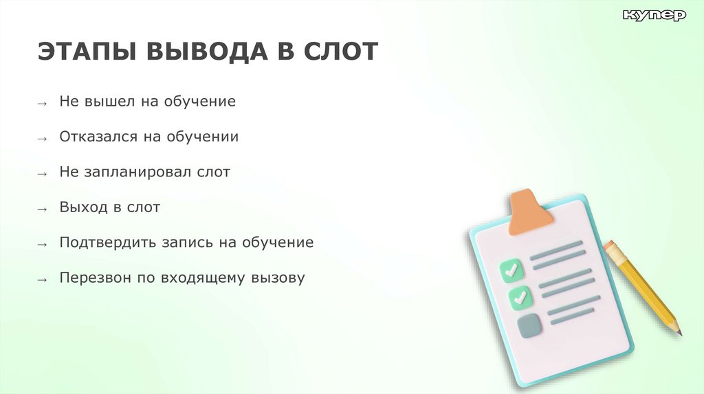 ЭТАПЫ ВЫВОДА В СЛОТ→ Не вышел на обучение