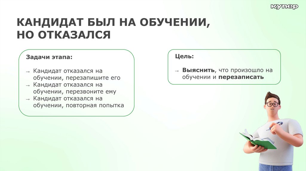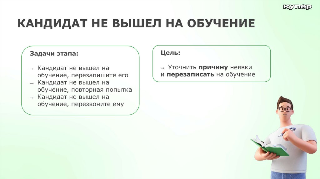 КАНДИДАТ НЕ ВЫШЕЛ НА ОБУЧЕНИЕЗадачи этапа: