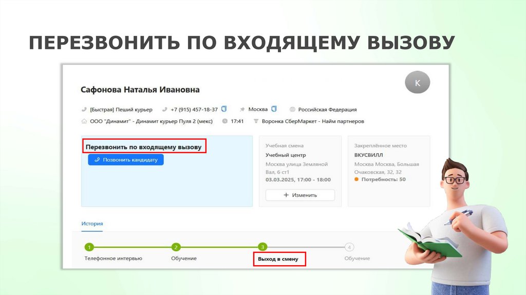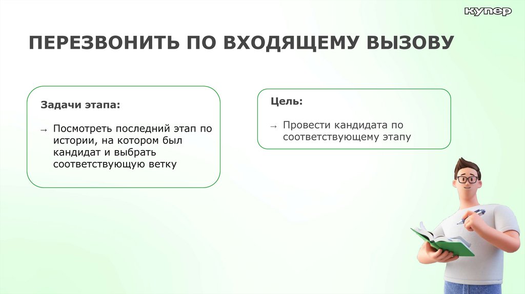 ПЕРЕЗВОНИТЬ ПО ВХОДЯЩЕМУ ВЫЗОВУЗадачи этапа: