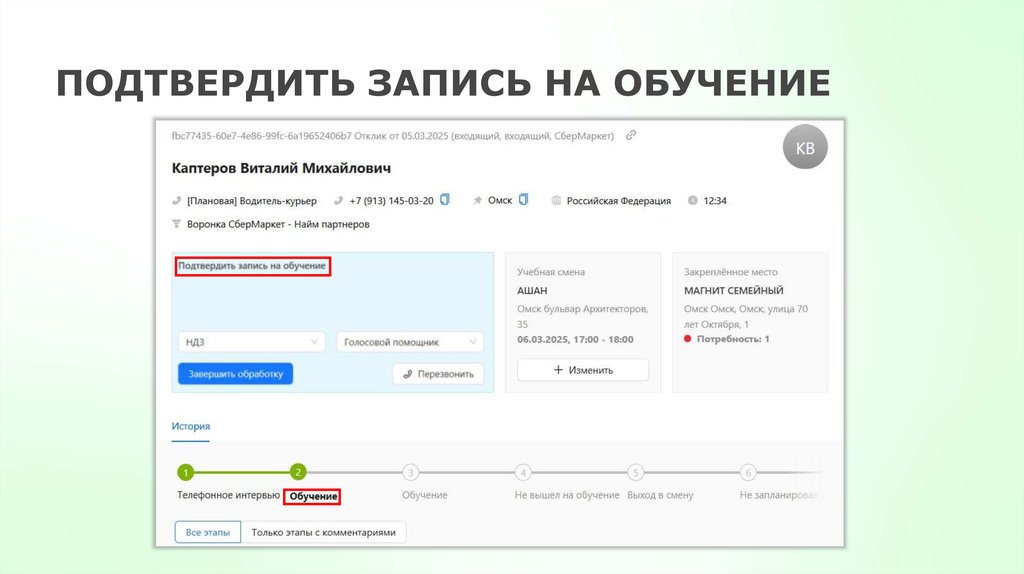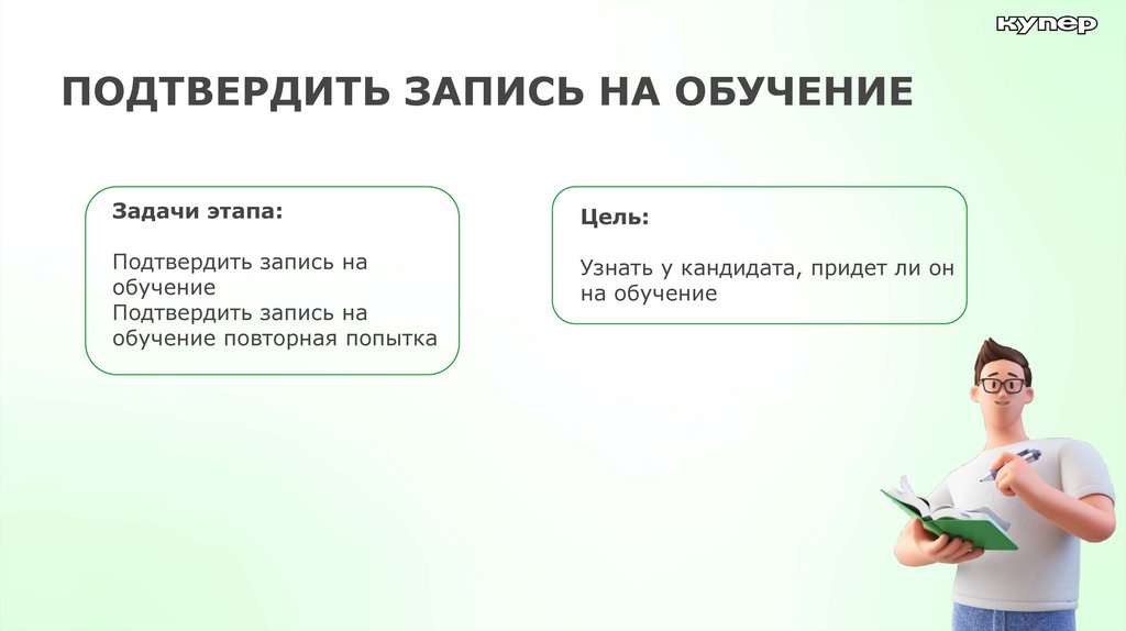 ПОДТВЕРДИТЬ ЗАПИСЬ НА ОБУЧЕНИЕЗадачи этапа: